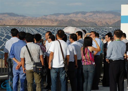 在探讨荒漠光伏电站发展及相关技术话题后,全体会议代表前往哈密地区已建成的大型光伏荒漠电站进行参观,其中也包括了由特变电工新能源公司承建的中广核20MW项目及中电投20MW项目,系统集成业务是新能源公司精心部署的光伏全产业链中的重要一环,长达十多年的丰富建站经验成就了新能源公司在系统集成领域的领跑者地位,各类离、并网光伏电站装机容量达到了500MW以上。