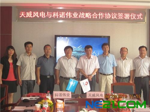 6月20日,保定天威集团副总经理杨明进、保定天威风电科技有限公司总经理庞涛、保定天威风电科技有限公司总工程师鲁志平抵达保定科诺伟业控制设备有限公司,科诺伟业董事长许洪华、副总经理兼风电事业部总经理赵斌及保定科诺伟业控制设备有限公司总经理武鑫等人陪同下,对厂区进行了参观。随后,双方对战略合作内容及今后发展方向进行了协商,并最终签订战略合作协议。