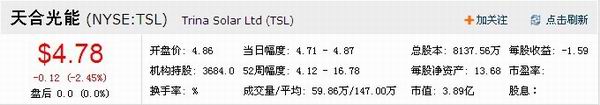 天合光能有限公司是一家专业从事晶体硅太阳能组件生产的美资跨国制造商,于2006年12月18日(美国时间)正式在美国纽约证券交易所成功挂牌上市,总投资3.075亿美元,注册资本1.2亿美元,是常州最大的外资项目之一。该公司自1997年成立以来,一直是中国光伏行业的领军企业。其高品质的光伏组件给世界各地的并网和离网状态下的民用、商用、工用以及大规模的公共设施带来洁净、可靠的太阳能。凭借遍布亚洲、欧洲、北美的当地的销售和营销网络以及安装商合作伙伴,天合光能以提升太阳能行业的竞争力和能源的效率为己任,致力于打造一个可持续发展的光伏产业。该公司于2006年12月19日在纳斯达克上市,发行价每ADS18.50美元,1ADS=50普通股。