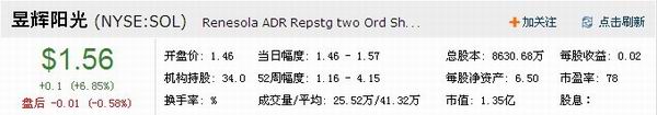 韩华新能源(Hanwha SolarOne)原名“林洋新能源”,公司前身林洋电子成立于1997年,系中国最大的电表制造商之一。2004年8月,公司转型成立林洋新能源。2010年8月,韩华石化(Hanwha Chemical)购入林洋新能源普通股,持股比例达到49.99%,并与公司建立战略合作伙伴关系。同年12月,林洋新能源正式更名为“Hanwha SolarOne”。公司总部位于上海,在江苏启东设有生产基地,目前主要从事硅锭铸造、硅片切割、光伏电池生产和光伏组件封装等,对外提供的太阳能产品以光伏组件(PV Modules)为主。公司于2006年12月21日正式登陆纳斯达克,IPO发行价12.5美元,1股ADS=5股普通股。2011年2月15日,股票代码由此前的“SOLF”改为“HSOL”。