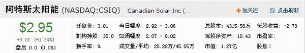 CSI阿特斯 (Canadian Solar Inc.),是在一家加拿大注册的光伏公司。公司致力于将太阳能转换为电能的光伏产品的研发、制造、销售和售后服务。自2001年以来,CSI阿特斯先后在中国建立了三家独资企业:CSI阿特斯光伏电子(常熟)有限公司,CSI阿特斯光伏科技(苏州)有限公司,CSI阿特斯太阳能光电(苏州)有限公司。CSI阿特斯为全球客户生产在住宅、商用、工业等领域有着广泛应用的太阳能光伏产品及太阳能发电应用产品,同时还以公司的专业品牌为汽车行业、通讯行业等特殊市场提供太阳能光伏产品的解决方案,CSI阿特斯也为世界领先的太阳能光伏厂商进行OEM加工。 CSI阿特斯太阳能公司(Canadian Solar Inc.)于2006年11月9日正式在美国纳斯达克挂牌上市,发行价每股15美元。