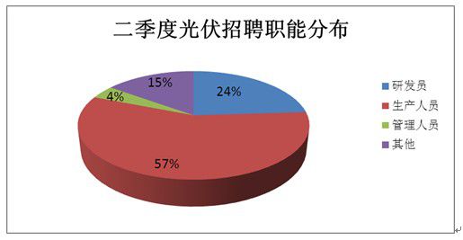 分职位趋势看:光伏研发及客户代表职位招聘呈上升势头,专业光伏研发人才以及管理员职位招聘较平稳,二季度全国GDP总额为227098亿元,同比增长7.6%,与以往国内生产总值增速相比,略低于均值,从事光伏以及相关职位的增幅基本不大,而由于近期新上市的企业中约45%是项目工程,房产、新能源等,这些行业的专业光伏职位的招聘在二季度呈现明显上升。另外,由于二季度涉及民生、环保、新能源等基建以及工业基础项目较多,且地域分布不均,专业光伏研发人才在不同地区呈现不同的供需情况。