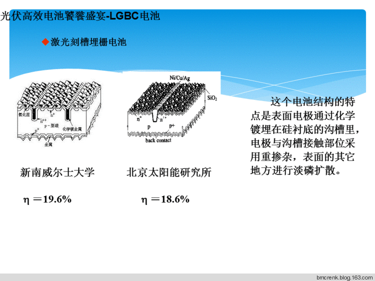 图 7 :新南威尔士大学 激光刻槽埋栅电池 h =19.8%