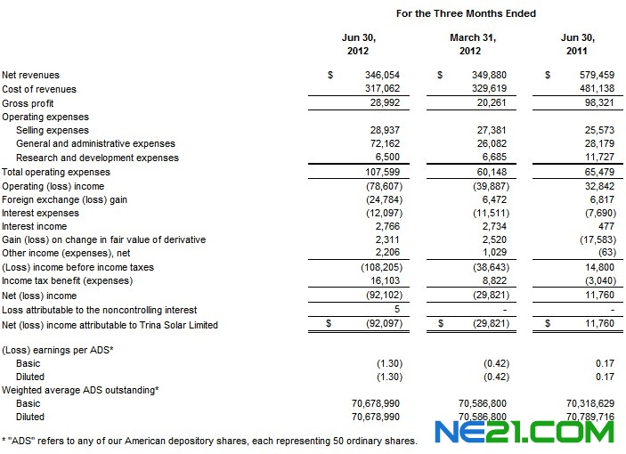 此外,天合光能将2012年的出货量下调由此前预期的2.0-2.1GW下调至1.75-1.80GW。