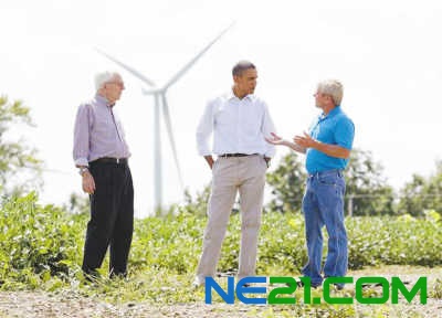 同样在8月14日,美国总统奥巴马拜访了爱荷华州的一个家庭农场。在这座农场的土地上,玉米和大豆肆意地生长着,农田上还树立着风力发电机为当地供电。在附近村民的簇拥之下,奥巴马呼吁,当周边的传统制造业走向衰落时,是风机制造厂给人们提供了新的就业机会。他说:“现在风电行业给爱荷华州提供了7000多个就业岗位,这些都是体面的工作,是人们值得骄傲和为之奋斗的所在。”