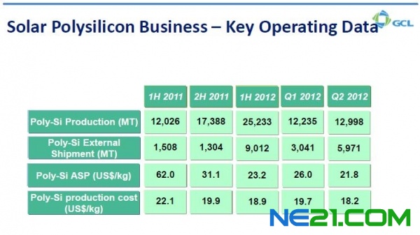 多晶硅外部销售也大幅提升,从2011年上半年的728,658港币上升到2012年上半年的1,624,061港币。