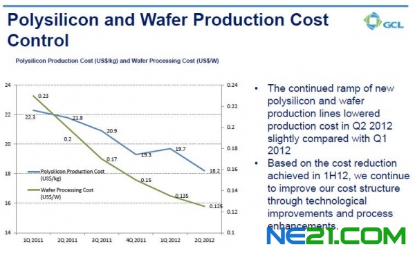 多晶硅平均销售价格下降约62%,而生产成本仅下降14.5%,从截止2011年6月30日的六个月中每千克22.1美元下降到2012年同期的18.9美元。