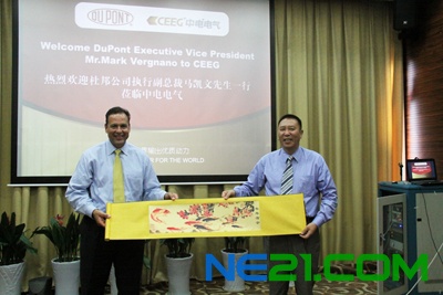 马凯文对于中电电气的热情接待表示感谢,他在13年前就曾来中国参加中电电气和杜邦有关雷力通变压器的授权仪式,可谓中电电气与杜邦合作的历史见证人,他对于中电电气在十多年里的迅猛发展感到兴奋,也相信未来双方还有很多的合作机会。马凯文说,杜邦有210年的历史,之所以能成功,是因为多次的自我转变,中电电气也是这样,22年的历史里也有好几次的自我转型,并且双方还有一个共同点就是自我转型一直是围绕科学和创新。杜邦过去能成功,并且未来也会成功,其秘诀还在于与重要客户及各个合作伙伴、政府保持紧密的合作,这就是“协力创新”,“要协力创新,就必须有非常忠诚的合作伙伴一起来帮我们进步。一起做,才能做大事。”