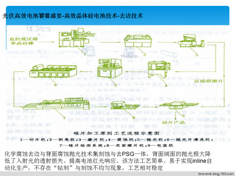目前行业出现的另外一种技术——化学腐蚀去边与背面腐蚀抛光技术集刻蚀与去PSG一体,背面绒面的抛光极大降低了入射光的透射损失、提高电池红光响应。该方法工艺简单、易于实现inline自动化生产,不存在“钻刻”与刻蚀不均匀现象,工艺相对稳定,因此尽管配套设备昂贵但仍引起业内广泛关注。(作者:和海一样的新能源)