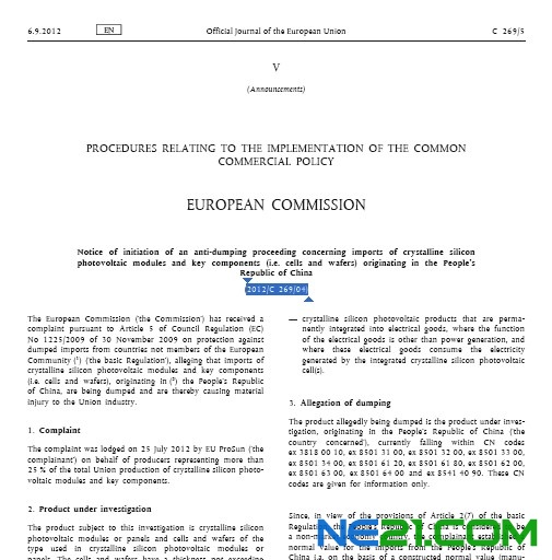 【独家】欧盟正式出台对华光伏反倾销调查文件