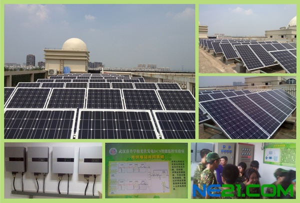 该光伏电站位于武汉睿升学校主教学楼顶部,现在,已经为学校教学楼及会议大厅的设备供电,为学校创造了经济利益。开学第一天,全校新生在老师的带领下参观了光伏电站现场和控制中心。