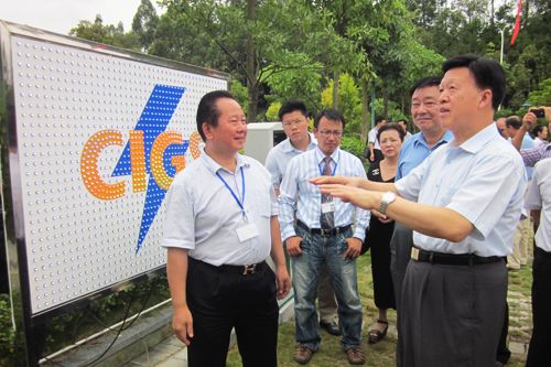 9月25日上午,广东省常务副省长肖志恒、中共从化市委书记黄河鸿、中共从化市市委副书记郭清和等一行来到了位于从化市温泉公园的智能发电系统展示区,参观了由广东金光伏能源投资有限公司主导的CIGS薄膜太阳能电池模块生产项目。在参观过程中,肖志恒副省长表示,CIGS是一项“科技含量高、制造成本低、节能效果好、经济效益高”的技术,政府应该给予大力支持。