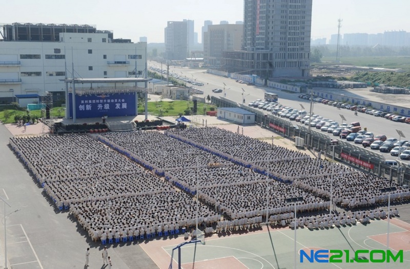图为英利集团转型升级动员大会现场,保定近万名员工参加。