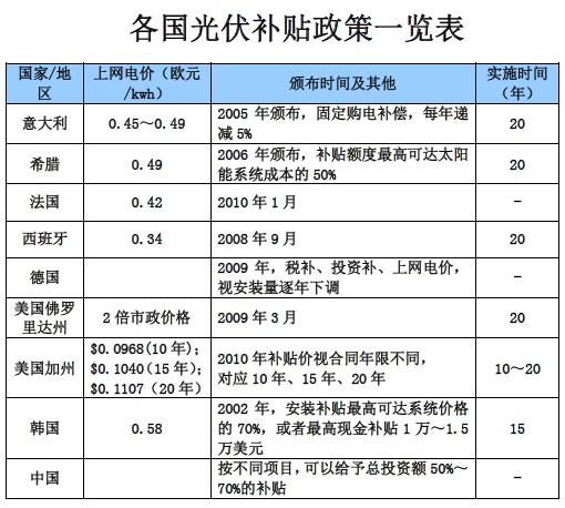 由于能源产业在国家战略中的特殊地位,早在“寒冬”开始之前,各国政府就已经开始了对本国光伏产业的扶持。