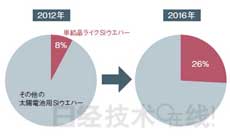 | 图7:占所有晶圆的1/4以上 类单晶硅晶圆的产量预计在2016年将占晶圆总产量的26%。(根据美国NPD集团太阳能电池部门Solarbuzz的数据制作) |
