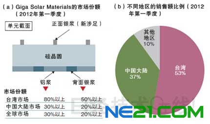 硕禾的战略是抓住太阳能电池的重要生产基地——中国大陆和台湾的市场。在该公司2012年第一季度的销售额中,中国大陆和台湾占到90%。其中,铝浆在台湾市场占80%以上,背面银浆占50%以上。不过,全球市场份额方面,铝浆和背面银浆分别为30%以上和20%以上,远低于中国大陆和台湾市场。对此,硕禾认为,“随着中国大陆和台湾太阳能电池产量的增加,我们的全球市场份额自然会增高”(该公司销售部部门经理Michael Chen)。