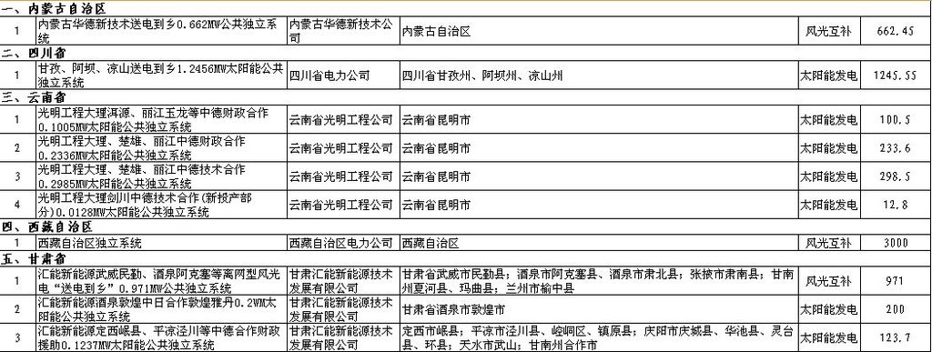 索比光伏网讯: 财政部发布《关于公布可再生能源电价附加资金补助目录(第二批)的通知》,公布了光伏" title="光伏新闻专题">光伏、风电、生物质发电等可再生能源电价附加资金补助项目,其中,太阳能光伏发电项目22个,风光互补项目3个。