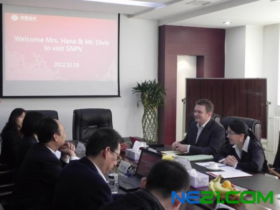 :10月19-22日,捷克EPI公司总裁哈娜、总经理戴维斯访问公司,受到陕西光伏集团董事长王志春、副总经理贾红刚等领导的热烈欢迎。访问期间,双方就陕西光伏(捷克)合资公司主要业务、运营模式及2013年工作计划进行了商谈。