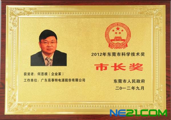 据了解,在此次获得市长奖的企业家中,他们所在的企业都可以作为行业中的东莞龙头企业,涉及到生态保护、节能环保和公共安全的项目,引领我市产业转型升级发展。易事特作为国家火炬计划重点高新技术企业,在何思模董事长的细心经营下,公司经过了从无到有,从小到大,从弱到强的发展历程,成功实现了转型升级的跨越式发展,不仅连续八年获得“东莞市工业龙头企业”的荣誉称号,还在电源、太阳能光伏发电领域的发展中走在了行业的前列,为东莞的新能源产业发展做出突出贡献。