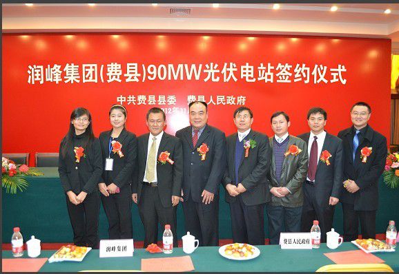 该光伏电站项目一期装机容量90兆瓦,二期装机容量100兆瓦的光伏电站,坐落于费县石井镇,该镇荒地面积较大,地域广阔,光照条件好,适宜建设大型光伏电站系统,各类基础配套设施便利。此次润峰集团与临沂市共同合作开发光电资源标志着政企双方为实现节能减排、创造清洁能源的新开端,也是润峰集团立志用绿色光电资源惠及老区人民的一项重要举措。该项目将于2012年11月20日开工建设, 2013年4月完成一期90兆瓦光伏电站全部并网发电,并确保早日运行发挥效益。