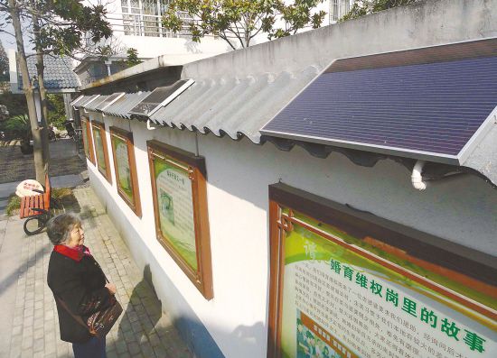 索比光伏网讯:近日,苏州市姑苏区二郎巷社区的太阳能供电系统投入使用,每天为社区服务中心供电,多余电能储存在蓄电池中备用,这在苏州市尚属首例。图为11月13日,一位居民从二郎巷社区的太阳能电池板下经过。