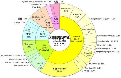 中国虽然是世界的太阳能电池板工厂,但国内市场小,逾9成产品需要出口,在对欧出口难以指望的情况下,中国已经采取了拉动内需的措施(金太阳政策)。在这种情况下,实施FIT的日本市场成为了关注的焦点。