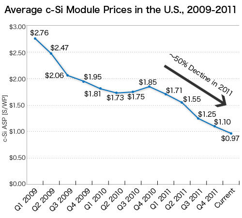 资料4.美国的晶体硅模块价格变化(2009~2011)