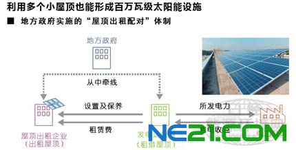 在日本,由地方政府推动的“屋顶出租中介”业务正逐步推广。这是一项为出租屋顶用于设置太阳能电池板的“屋顶出租企业”,与设置太阳能电池板开展发电业务的“发电运营商”牵线搭桥的事业。
