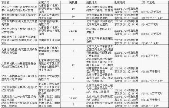 索比光伏网讯:受益于2012年第二批金太阳项目和分布式发电政策的出台,北京市发改委近期密集批复了12个光伏项目,合计约138MW。