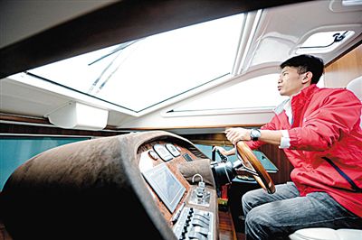 下图:12月5日,驾驶员在厦门筼筜湖驾驶太阳能游艇。