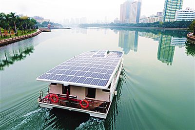 索比光伏网讯:日前,由福建省厦门市杰能船艇科技有限公司研究开发的太阳能游艇在厦门研制成功并投入使用。这一由玻璃钢制成的游艇长15米,宽6米,重3吨,船顶太阳能面板面积达90平方米,太阳能所产生的能量转化储存为电能,为船上各种电器用设备提供用电,无污染、无噪音、零排放,是城市内河、湖泊、水库等水域旅游观光理想的节能环保船只。