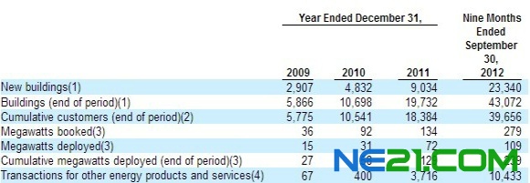 --运营数据:截止2012年三季度累计开发4.31万栋建筑;累计拥有3.97万个客户(包括居民的、商业的和政府客户);累计开发光伏项目达239MW。