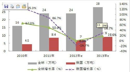 图1:2010-2013年全球及我国多晶硅产量与增长