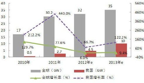 图3:2010-2013年全球及我国光伏新增装机量与增长