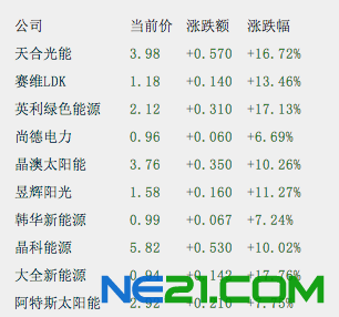 中概太阳能指数早盘大涨13% 受补贴计划刺激