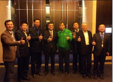 骆家辉与爱国者国际化联盟企业家合影,中为骆家辉、黄鸣