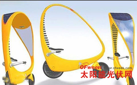 顾名思义,太阳能自行车以太阳作为动力来源,将太阳能转化为自行车所需的电能。这种电动自行车有一个特殊的顶蓬,它有两个作用,一是用来防护太阳光的照射和雨水的侵袭,第二个作用就是收集太阳能。它主要是为那些不想花费体力的人而制造。