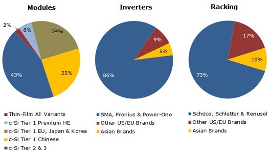 图一、2012年底英国光伏组件、逆变器、和支架供应格局