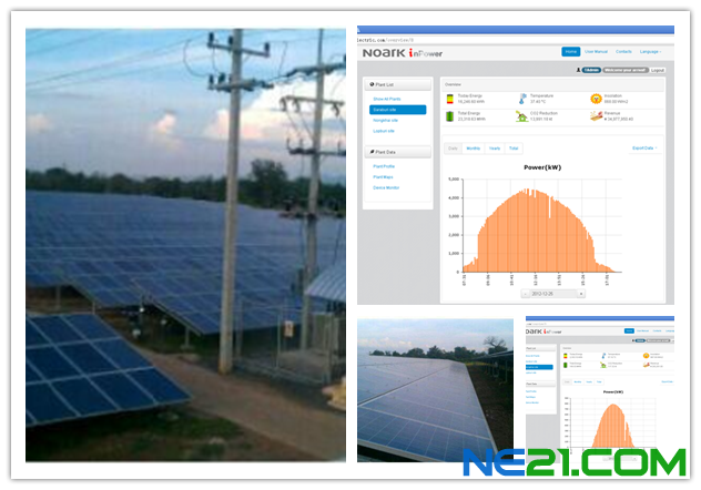 此次应用成功的Saraburi电站座落在距离曼谷108公里的地方。人称是北标府,以历史遗址、神圣的脚印、自然美景以及有名的美食著称的省份。Nongkhai电站位于泰国的东北地区,人称廊开府,廊开府的北部为治海低洼平原,东畔为高山间以丛林,西边为连绵不绝的山脉,南方为高原地带。NOARK在短的时间内就完成了两个项目的云主站的连接与搭建以及泰国1100kW子站的开发和调试工作,使整套系统顺利上线使用。其中装机容量为1100kW的Nongkhai太阳能电站,设计使用包括汇流箱、逆变器在内的智能元件33台;通用网关1台;子站系统一套;支持金太阳协议和主站云协议。通过广域网数据上传云主站,通过云主站对相应数据进行存储备份,分析对比,进行报表与数据挖掘工作。用户可以通过任何终端随时随地查看站点运行情况。