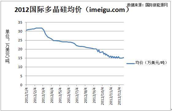 (来自国际新能源网的数据显示整个光伏行业的产能过剩问题持续影响着整个行业的出货价格,多晶硅的全球均价截止2012年12月21日跌至14.5万美元/吨,远低于国内平均生产成本30万至40万元/吨。)