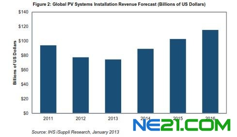 但是,未来仍存在一些亮点:太阳能安装容量呈上升之势,光伏技术的效率不断提高,虽然欧盟市场在金融动荡的影响下表现疲弱,但中国和美国市场增长,将支撑整个产业。以下是IHS公司太阳能研究团队关于2013年太阳能市场的10大预言。
