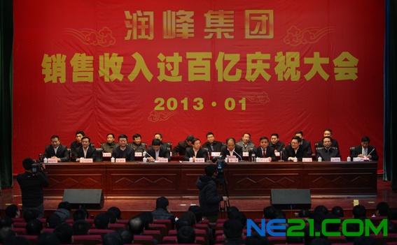 :1月9日下午,润峰集团销售收入过百亿庆祝大会在集团大楼礼堂召开。市委副书记、市长梅永红出席并讲话;市委常委、副市长周洪主持;市政府秘书长杜昌华宣读了市委、市政府《关于表彰山东润峰集团有限公司销售收入过百亿的通报》;县委书记、县人大常委会主任程大志讲话。市发展改革委、市经济和信息化委、市财政局、市人力资源社会保障局、市商务局、市环保局、市统计局主要负责人;微山县各乡镇(街道)党(工)委书记、县直各部门主要负责人;部分新闻媒体的记者朋友以及润峰集团干部、职工代表参加了会议。
