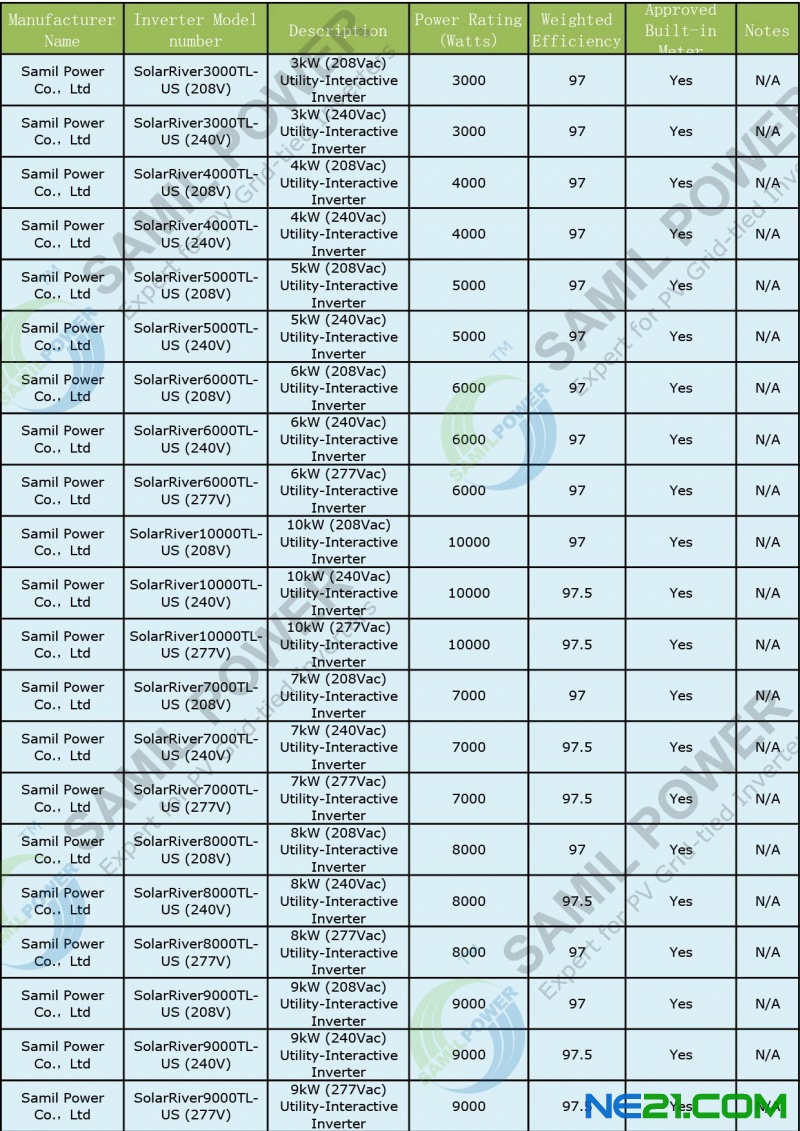 从上图中山亿新能源列名美国CEC榜单的机器有20余种,其中效率高达97.5%,从效率方面来看远远领先国内同功率逆变器,并且在元器件选材都采用国际顶尖品牌供应商,保证各个配件的质量和性能。该系列机型拥有无变压器的设计、宽范围的MPPT、体积小、安装简单等特点。山亿新能源相关负责人透露,山亿新能源针对美国研发的机型已经取得权威的CSA认证,在美国各州畅通无阻,在分布式电站项目中也拥有极大的竞争力,并且优势已在许多分布式电站中显现出来。