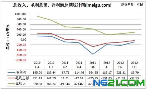 其毛利收入总额和净利润的走势情况与总收入的走势基本一致,自2011年二季度开始出现亏损,毛利率2012年第三季度为-11.2%,而去年同期为-3.6%。这一毛利率在行业中不算是非常好,此前公布三季报的晶科能源晶澳太阳能的毛利率为9.9%和-5.9%.