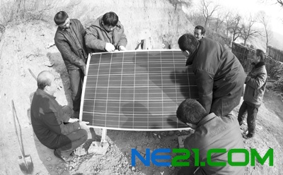 1月11日,技术人员正在为山西临汾偏远地区没有通电的农户安装光伏太阳能发电设备。从此将结束当地农家无电的历史,极大地方便了农民的生活。
