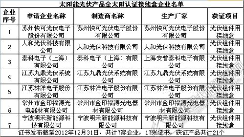 索比光伏网讯:“金太阳”每年都有很多企业通过认证,笔者在“金太阳”行业多年,汇总了截止2013年1月17日通过鉴衡和中国质量认证中心的通过“金太阳”认证的企业名录,供业内同事在招标、企业选择时使用。下面是太阳能光伏" title="光伏新闻专题">光伏产品“金太阳”CGC认证接线盒企业名单。