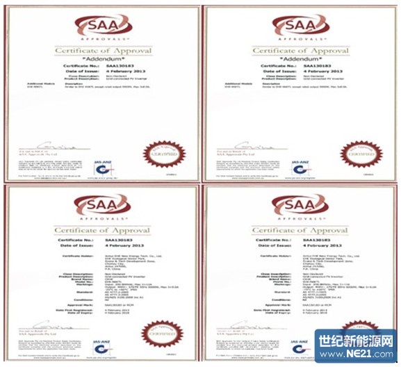 日前此两项产品凭借良好的设计和优异的技术性能,再次顺利拿到澳大利亚的AS4777认证证书,获得了进入澳大利亚市场的通行证。