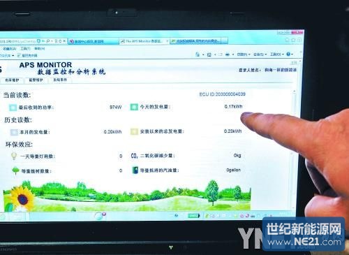 北京首个个人光伏发电项目并网发电后,监测系统显示的实时数据供图