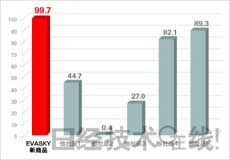 普利司通介绍称,在由第三方试验机构Chemitox(东京都大田区)进行的试验中,新产品的Pmax保持率为99.7%,在实施比较试验的各大公司EVA薄膜中,该产品的发电效率降幅最小。Pmax保持率表示在试验后能将太阳能电池发电量指标Pmax值维持在何种程度,数值越接近100%表明耐久性越出色。