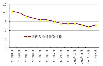 图1:2012-2013年国内多晶硅现货价格(单位:万元/吨)